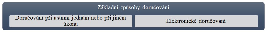 Doručování upravuje § 39 a násl. zákona č. 280/2009 Sb., daňový řád, ve znění pozdějších přepisů (dále jen "daňový řád" nebo "DŘ"). V případě doručování prostřednictvím datové schránky je třeba vycházet také z příslušných ustanovení zákona č. 300/2008 Sb., o elektronických úkonech a autorizované konverzi dokumentů, ve znění pozdějších předpisů (dále jen "zákon o elektronických úkonech" nebo "ZEÚ").