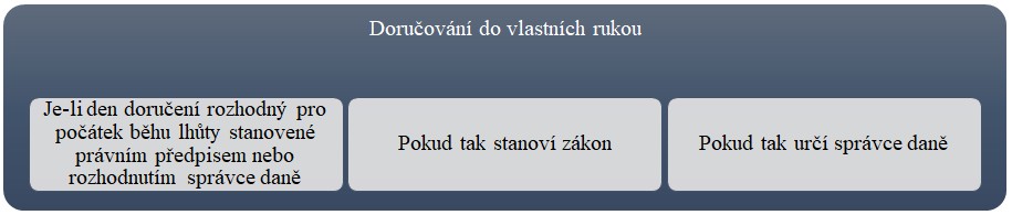 Správce daně může také sám určit, které písemnosti budou doručeny do vlastních rukou adresáta. V takovém případě je nutné, aby správce daně posoudil závažnost, jakou by mělo případné zpochybnění běžného doručení, a to při respektování základních zásad správy daní.